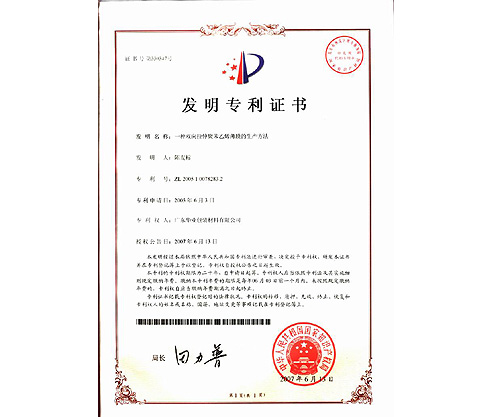 由我司自有力量研制成功的“一种双向拉伸聚苯乙烯薄膜的生产方法”获得国家发明专利授权。