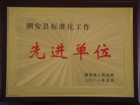 今天,我司获潮安县人民政府颁发标准化工作先进单位。