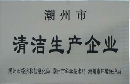 由市经信局牵头组织市科技局、环保局和省清洁生产中心等单位和专家,对我司申报清洁生产企业进行审核验收,授予我司“潮州市清洁生产企业”称号。