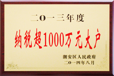 2014年,我司严格遵守税收法律法规、自觉履行纳税人义务,为潮州市税收收入做出了贡献,被市国家税务局评为2014年度“创税大户”。